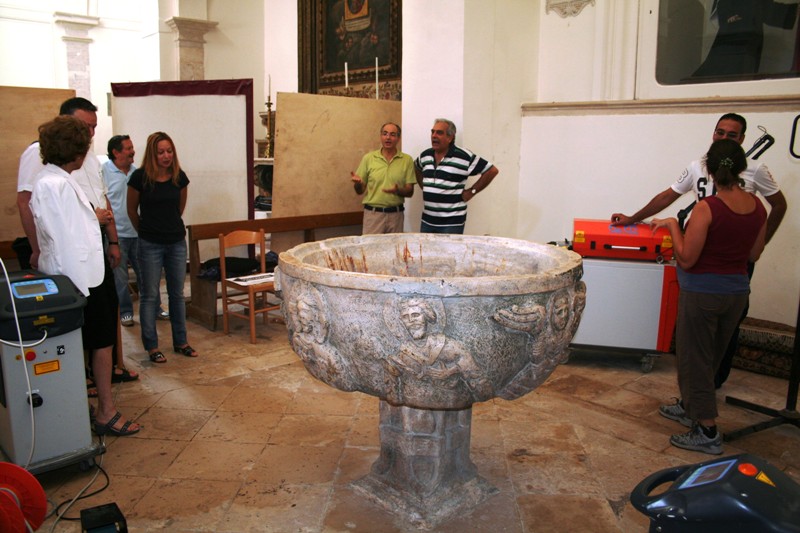 Oggetto di interesse dell’èquipe scientifica del Laboratorio L.I.A.C.E. (Laser Innovation in Artwork Conservation and Education), diretto dalla Prof.ssa Ida Maria Catalano, promosso dall’Università di Bari ed operativo presso il Museo Diocesano di Bisceglie, è il fonte battesimale presente in quella che è ritenuta la chiesa più antica di Bisceglie.
