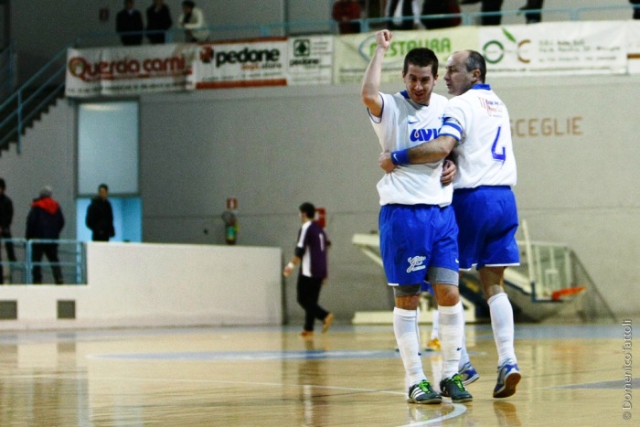 Il secondo tempo di Olimpiadi coincide con la solita rabbiosa reazione d’orgoglio del team biscegliese, che nei dieci secondi a cavallo dell’8’ trova vantaggio ed allungo. Dopo aver sonnecchiato per buona parte del match, Comas tira fuori dal proprio cilindro una magia che vale il 2-1, prima di confezionare un assist perfetto per l’accorrente Ricco, che raccoglie l’invito e cala il tris. Il micidiale uno-due dei padroni di casa abbatterebbe chiunque, non un Atletico Giovinazzo tutt’altro che arrendevole ed abile nel riaprire il match pochi minuti più tardi con capitan Bavaro, che finalizza in rete una splendida azione corale dimezzando il divario. Nei momenti di maggior difficoltà ci pensa Comas a prendere per mano i suoi, trascinandoli, con l’ennesima gemma stagionale, verso un 4-2 che sembrerebbe porre definitivamente fine alla contesa. Invece i giovinazzesi hanno ancora la forza per rientrare in partita, con il tapin vincente di Palermo che rianima i numerosi supporters ospiti giunti al PalaDolmen. Nonostante la mossa disperata di Iessi di inserire De Palma quale portiere di movimento, Olimpiadi tiene bene in difesa, incamerando altri tre punti che la lanciano al quarto posto della graduatoria.