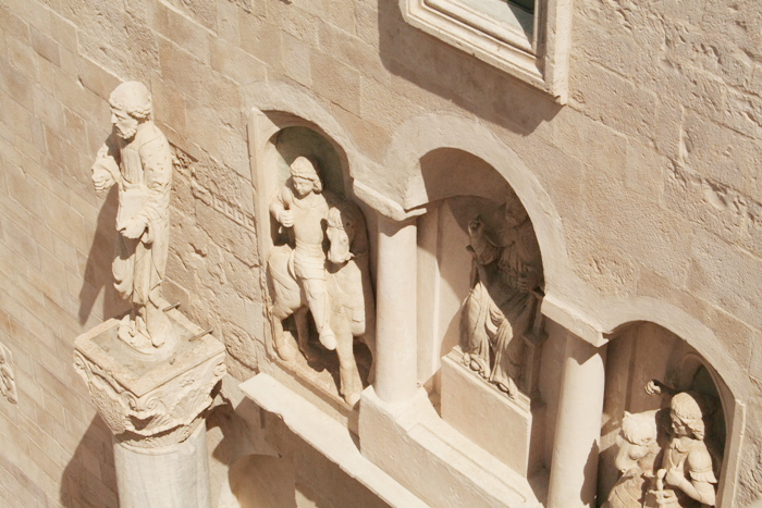 Per questo la pièce inizia con un dialogo fra Bisceglie e Sagina, fra la figlia e la madre, fra il passato glorioso e il presente che tenta di riviverlo esemplarmente, e si conclude, umanisticamente, con una cantabile laus civitatis, alla quale Dio ha voluto riservare il dono del rinvenimento del Vero Tesoro, ovvero delle reliquie dei santi patroni.