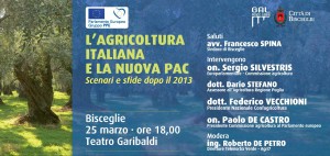 Si terrà venerdì 25 marzo alle ore 18.00, presso il Teatro Garibaldi di Bisceglie, il convegno di presentazione della nuova Politica Agricola Comunitaria.