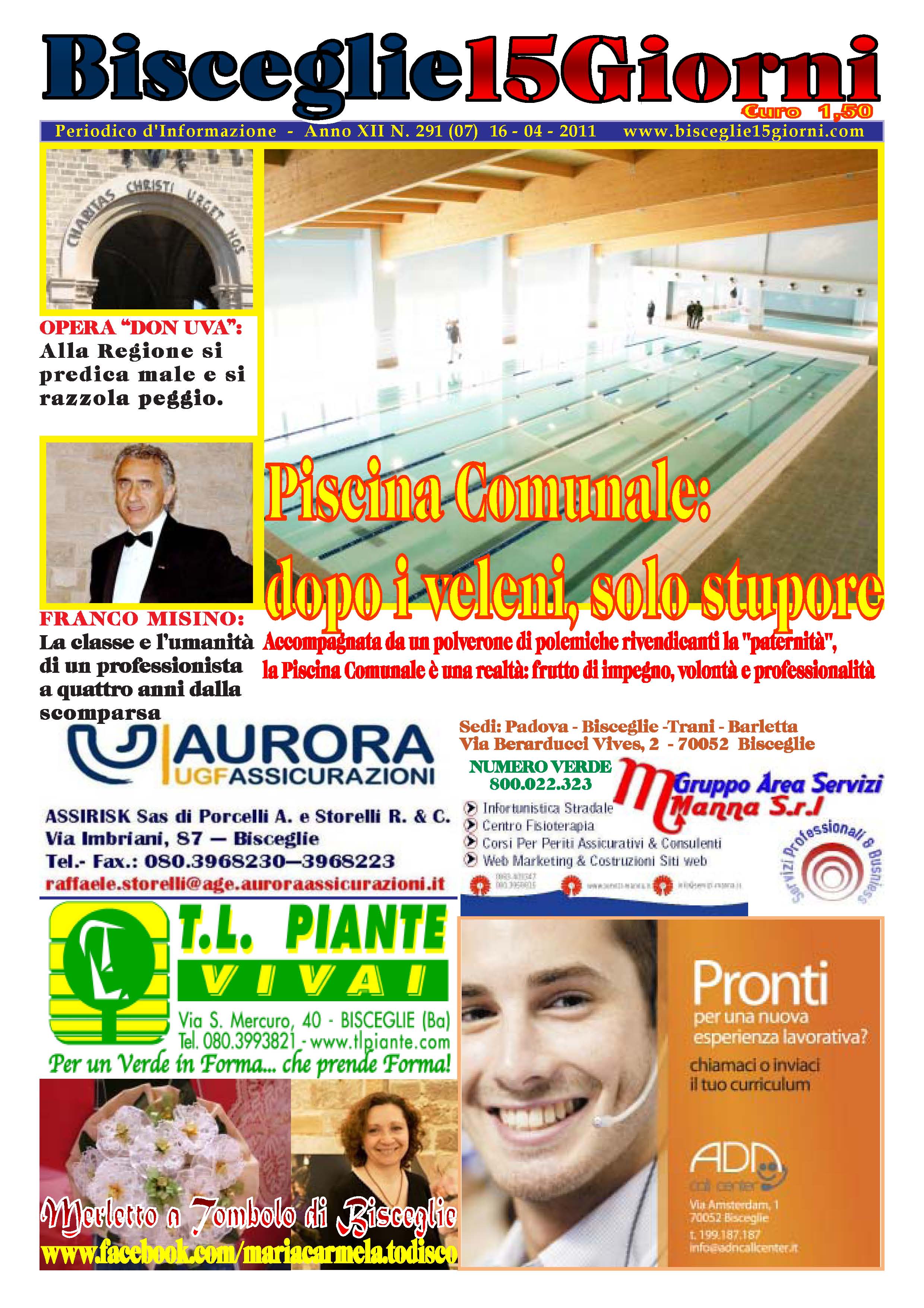Sfoglia gratis il numero di Bisceglie 15 Giorni del 16 Aprile 2011 Posted on 16 aprile 2011 by admin Bisceglie 15 Giorni n. 291 del 16 Aprile 2011 B15G_291_16 APR 11_7