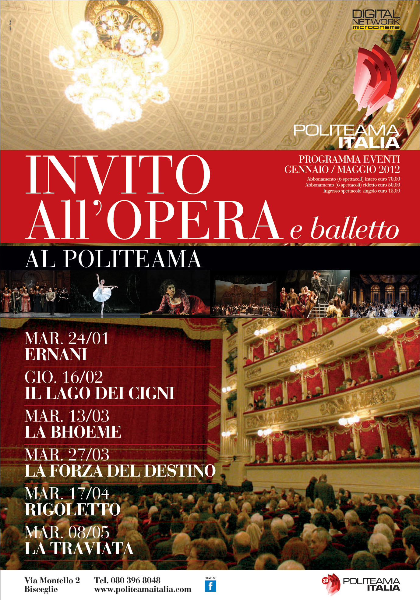 Un orgoglioso successo entra nel palmares dell’Unitre: aver portato l’opera lirica al cinema-teatro Politeama. Il merito è del prof. Giovanni Cassanelli, già docente di Storia della Musica presso la facoltà di Lettere e Filosofia dell’Università di Bari, nella sede di Brindisi (posto soppresso l’anno scorso dal Ministero per mancanza di fondi), nonché insegnante di Storia dell’Opera presso la nostra Unitre. Già dallo scorso anno il professore aveva iniziato un pressing con i signori Valente, proprietari e gestori del Politeama, affinché, anche loro, come tante altre sale cinematografiche italiane, si attivassero per entrare nel circuito di sale digitali con trasmissione via satellite italiano. Questo sistema consente di usufruire, a prezzi decisamente stracciati, in confronto al biglietto di ingresso in un autentico teatro, di opere liriche, concerti, balletti trasmessi in qualunque parte del mondo, standosene tranquillamente seduti nel cinema sotto casa. In diretta o in differita, l’emozione nell’ascolto della buona musica non cambia. Continua a leggere