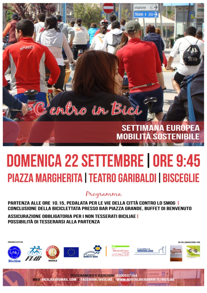 Per ricordare a tutti dei pericoli che corriamo per la nostra salute, Domenica 22 Settembre Biciliæ, sezione locale della FIAB – Federazione Italiana Amici della Bicicletta, e Rotaract Bisceglie organizzano una grande biciclettata per le vie di Bisceglie.