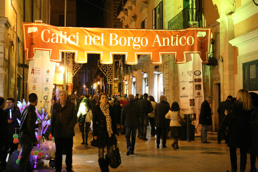 Con Calici nel Borgo Antico sarà possibile assaporare i vini bianchi, rossi e rosati, dolci o liquorosi, novelli e spumanti delle più rinomate cantine pugliesi. E tra un bicchiere e l’altro, non mancheranno degustazioni dei tanti prodotti d’eccellenza della nostra terra, visite guidate e tanti eventi collaterali.