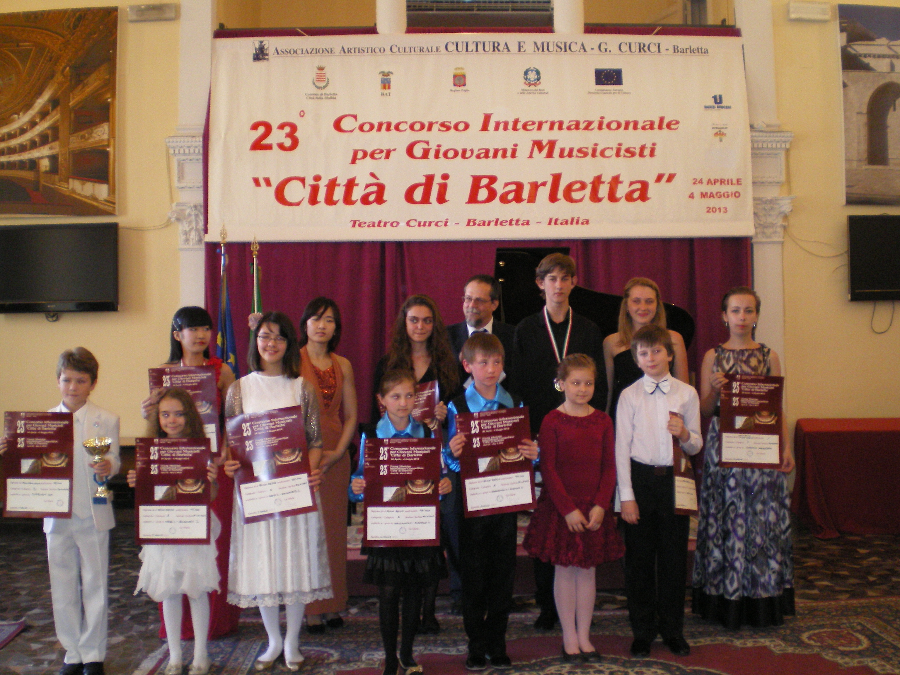 Si terrà a Barletta, giovedì 27 marzo p.v., alle ore 10,30, presso il Foyer del Teatro Comunale Curci, la Conferenza Stampa di presentazione del 24° Concorso Internazionale per Giovani Musicisti “Città di Barletta”, del 17° Concorso Internazionale di Esecuzione Pianistica “Premio Mauro Paolo Monopoli” e del 10° Concorso Musicale Nazionale “Premio Musica Italia”.