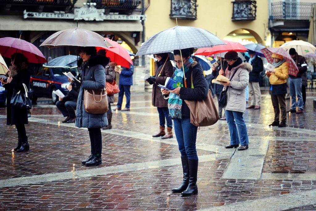 Le sentinelle vegliano sullo stile dei Veilleurs debout francesi: in rigoroso silenzio, a due metri di distanza l’uno dall’altro, leggendo un libro in segno della formazione permanente rivolti nella stessa direzione che è quella di un futuro migliore.