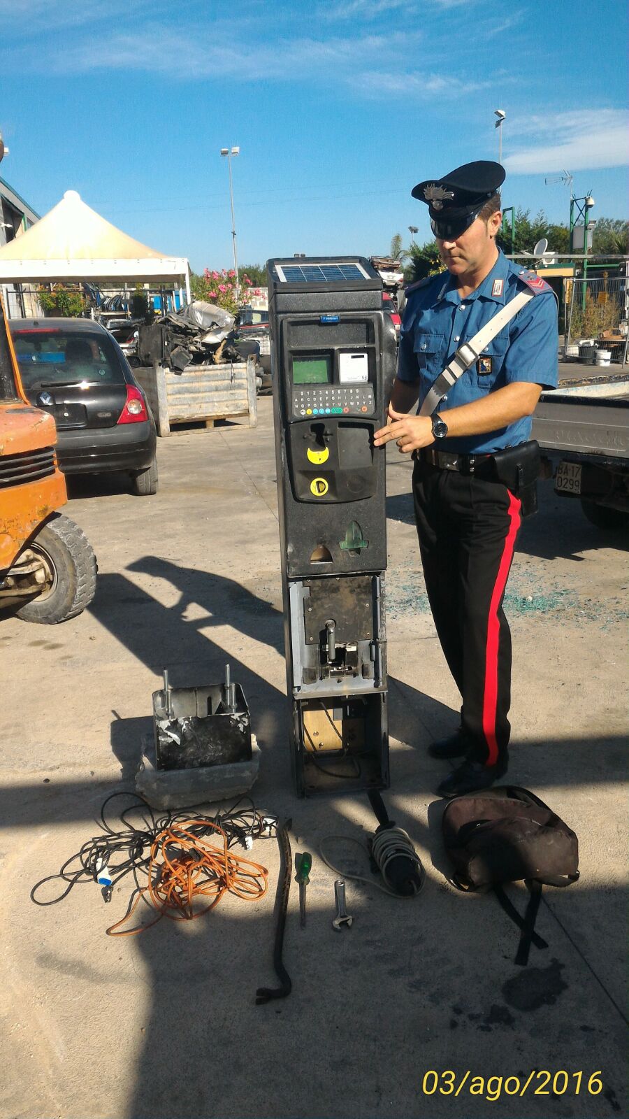 I militari sono arrivati all’individuazione di un garage sospetto poco dopo, quando hanno sentito un forte stridere causato dall’impiego di attrezzature da lavoro, hanno così sorpreso i due uomini mentre armeggiavano, muniti di flex, chiave inglese e altri attrezzi nel tentativo di sventrare ulteriormente la colonnina per il pagamento automatizzato del parcheggio. Le successive perquisizioni hanno quindi consentito di porre sotto sequestro per successivi accertamenti sia il materiale atto allo scasso che il parcometro, risultato tuttavia già privo della cassaforte contenente le monetine. Il maltolto, ammontante a circa 300 euro risulta quindi oggetto di ricerche, mentre il danno complessivo arrecato alla strumentazione necessaria al pagamento automatizzato è in corso di quantificazione al fine di consentire il premio assicurativo.